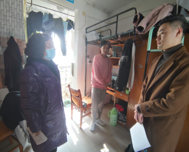 到达寝室后,王超副书记首先对寝室环境进行了全方位的了解,然后关切地询问同学们居住环境是否舒适,同学之间交流如何,日常生活和学习中有什么困难,学校管理方面有何不妥之处。同学们热情回答了王书记的问题,并对院领导的关心表示感谢。她还说道:“天气寒冷,目前正值传染病高发期和疫情防控的关键时期,希望大家保护好自己的身体,提高安全防范意识,积极锻炼身体,增强自身体质。寝室也要多开门窗,通风换气。”王超副书记与同学们的一席话体现了院领导对同学们的关心与爱护,也体现了学院对学生的重视与关怀。