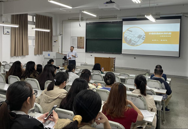 本次讲座以全面预算为主题,戴部长为同学们讲授了很多与企业实际案例相关的操作型知识。全面预算管理是管理会计应用体系的一部分,是企业价值创造的长效机制,在企业管理中举足轻重。然而很多企业在全面预算过程中存在问题,戴部长便提出问题的根源所在以及解决途径。他将内容分为两大块来介绍:首先是全面预算基础实务。通过一些生动有趣的故事和实例,比如“上海到夏威夷有多远”“二八法则”,使学生了解了全面预算的重要性、五大功能、流程以及全面预算编制方法。其次是全面预算管理操作实务。戴部长展示了全面预算管理层级分化的内容,通过举例展示各级各类预算表单的具体内容,讲解了年度预算指标主要指标核算与编制方法。此外,还讲解了各级集团的预算控制、按照项目或组织进行预算分析的主要内容和方法。最后,通过大家一起做一些课堂习题的方式,巩固了全面预算管理的相关知识。