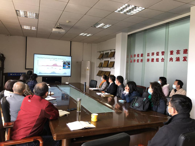 在互动讨论环节,与会教师同屠教授进行了积极的讨论。此次交流使教师们对新冠疫情下美国的政策及其影响有了更深刻的认识,进一步扩大了大家的学术视野。