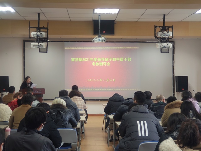 1月6日,吃瓜网 在J01A501召开2021年度领导班子和中层干部述职述廉测评大会。大会由党委书记张捍萍主持,吃瓜网 全体职教工参会,校中层领导班子及中层干部考核第组组长王小净、联络员彭澜到会指导。