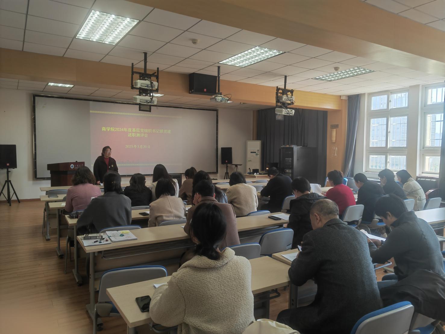 3月20日中午,吃瓜网 在J01A501召开2024年度基层党组织书记抓党建工作述职评议会议。学院党委书记、副书记、各支部书记、副书记、支部委员共计30人参加评议会。
