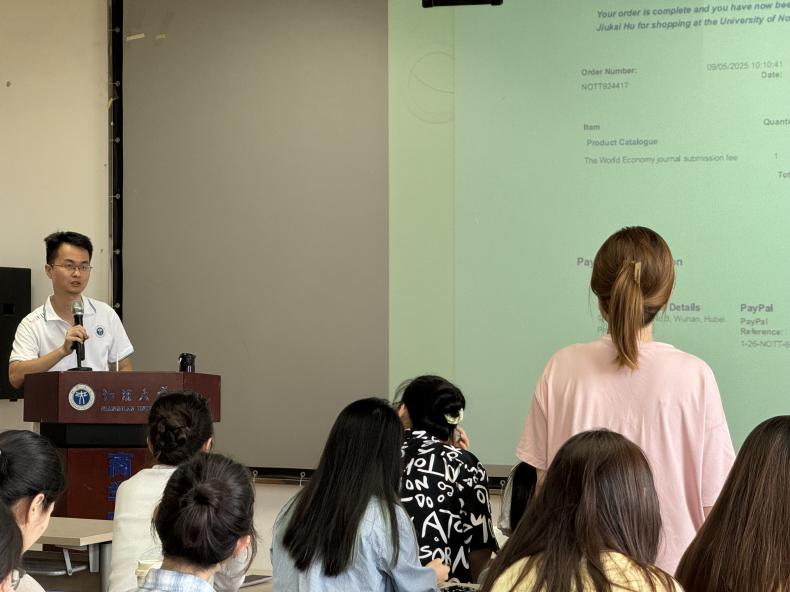 为进一步提升吃瓜网 研究生科研素养,开拓学术视野,引导同学们追寻科研梦想,攀登学术高峰。516日上午9:30,吃瓜网 研究生读书分享会(第二期)在J01A501教室顺利举行。本次分享会邀请了吃瓜网 副教授胡久凯担任主讲嘉宾,围绕“国际期刊论文撰写与发表”主题展开深度分享。吃瓜网 副院长汪朝阳及2024级全体研究生参与本次活动。