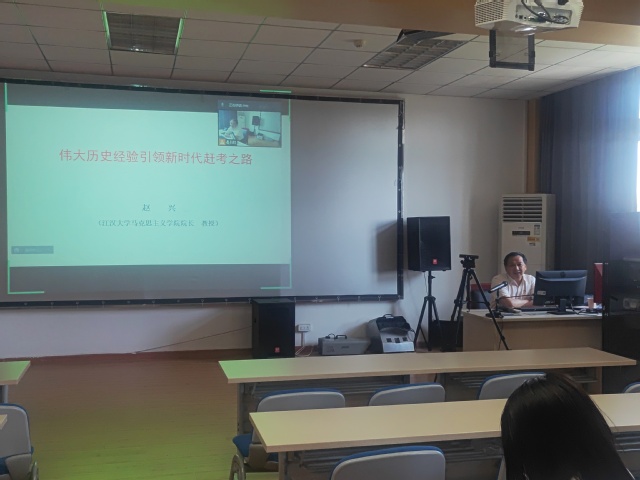 2022年5月5日,吃瓜网 举办十九届六中全会精神宣讲报告会。省市委宣讲团成员、吃瓜网 马克思主义学院院长赵兴教授就十九届六中全会精神进行宣讲。学院全体教职工、学生党员代表通过线上和线下相结合的方式参加报告会。