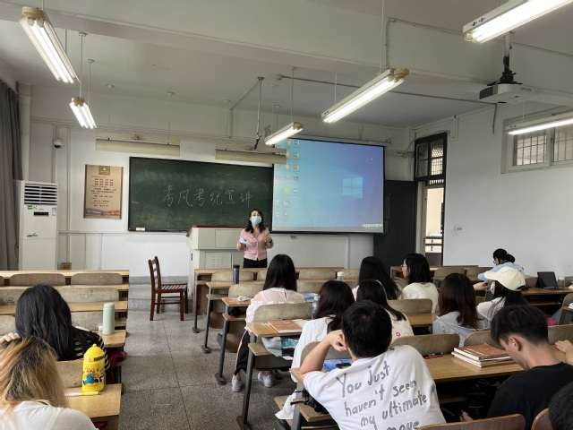 本次主题班会采取线上线下相结合的形式开展。各班级围绕期末考试诚信教育,设置了多种多样的主题。在主题班会上,班主任督促同学们要认真复习,为接下来的考试做好充足的准备,强调考试前要根据各门课程的考试时间和自身学习情况,合理制定复习计划;在考试过程中不得携带禁止物品,尤其是通讯工具如手机、智能手表及手环等参加考试,保证考试的公平公正,考出真实水平。辅导员带领同学们认真学习了《江汉大学学生手册》中考试纪律规定,对考风考纪进行了进一步的规范和强调,引导学生树立诚信意识,认真复习备考,自觉遵守考场纪律,杜绝考试作弊行为。