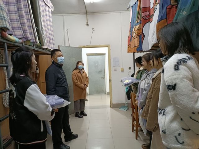 在南区9栋202寝室,景校长细致地询问了同学们的学习和生活情况,就居住环境、室友关系、学业进展、生涯规划等和同学们进行了亲切交流,勉励大家一定要珍惜在学校读书时的美好时光,踏实努力,勤奋向学,不负韶华。同时,景校长认真听取大家对线上教学和学校日常管理工作的意见和建议,鼓励同学们在疫情防控特殊时期,要理解和配合学校各种疫情防控措施,遵守学校纪律,做好自我防护、自我管理、自我学习。针对疫情影响下,同学们对前途未知的迷茫,景校长鼓励大家早日确立人生方向,努力学好专业知识,提高本领,给未来打下坚实基础。疫情的阴霾终将退散,我们要期待美好的明天。接着,景校长给大家送上了御寒冲锋衣,让同学们温暖过冬。