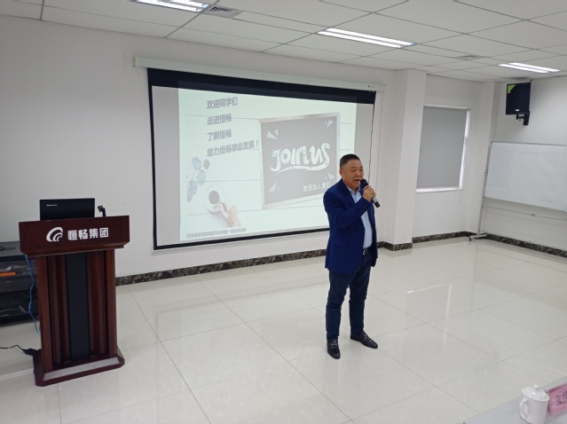 恒昌集团尹传勇董事长致欢迎辞,向吃瓜网 师生表示热烈欢迎。并分享了自己近40年来从一名普通大学生通过不懈奋斗,在国家政策调整的机遇期,成立、发展和壮大恒畅集团的故事。尹传勇董事长鼓励参加活动的同学们珍惜校园时光不断增强本领,欢迎同学们到恒畅集团开展实习实践,毕业后到恒畅集团工作就业,并希望与吃瓜网 在多方面进行校企合作,助力学校人才培养,携手为地方经济发展作出更大贡献。