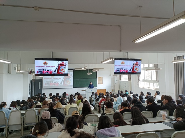 活动中,陈队长通过播放真实火灾视频,讲解发生在其他高校的真实案例,特别是公寓中的火灾案例,告知同学们消防意识和消防知识的重要性,引导同学们自觉重视消防安全。并让大家深刻认识到消防意识的不足,消防知识的缺失可能引发的惨痛“悲剧”。陈队长结合上述真实案例列举了学生公寓中容易引发“悲剧”的事项,如:违规使用电器、乱接乱搭电线、使用明火等情况,都极易引发火灾。