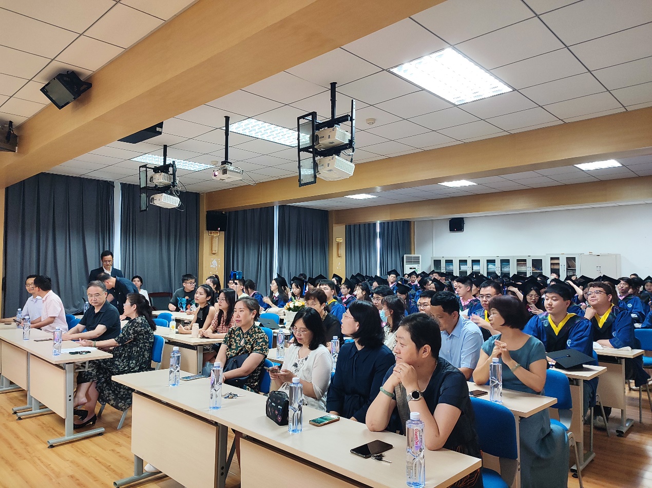 典礼伊始,张捍萍书记向2023届全体毕业研究生表示热烈的祝贺,向各位导师表示崇高的敬意。张书记鼓励同学们大步迈向远方,追逐梦想,乘风破浪,扬帆起航,开启人生新辉煌;愿同学们以奋斗姿态激扬青春,不负时代,不负韶华,为自己的人生梦想去健康工作和生活,成为更优秀的自己。希望同学们毕业后常回家看看,历尽千帆,归来仍是少年。
