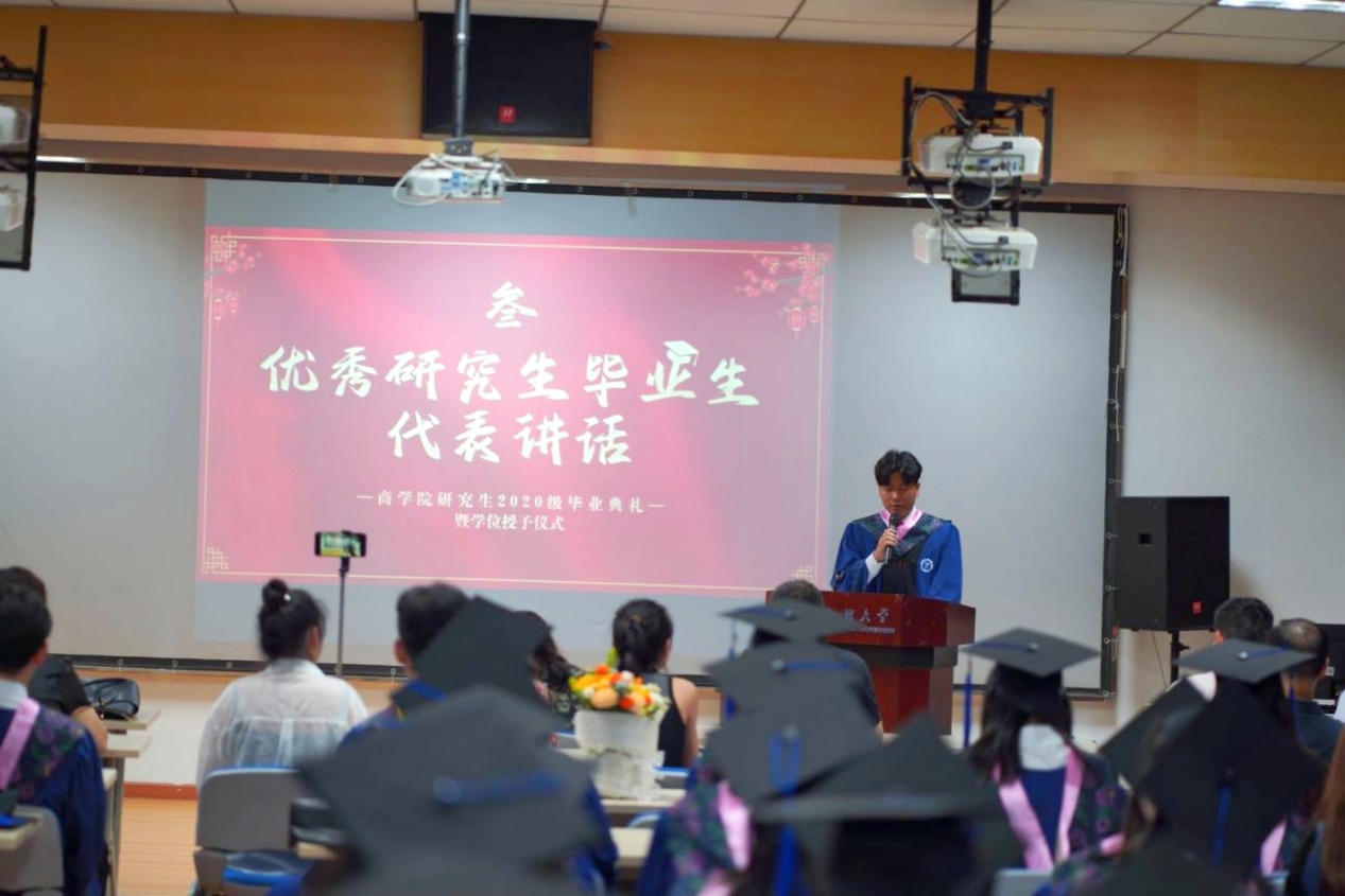 优秀研究生毕业生代表贺焕志同学发言