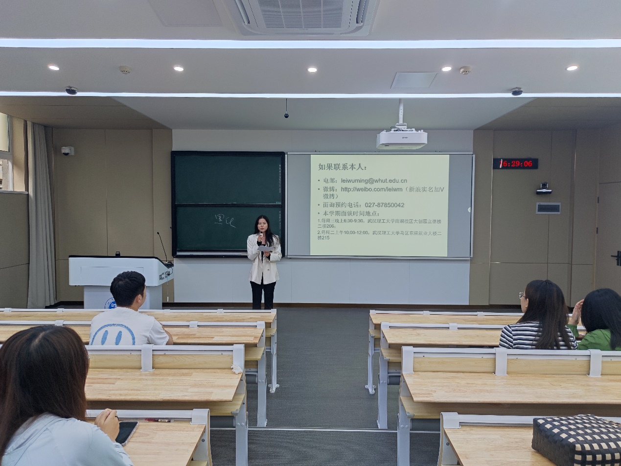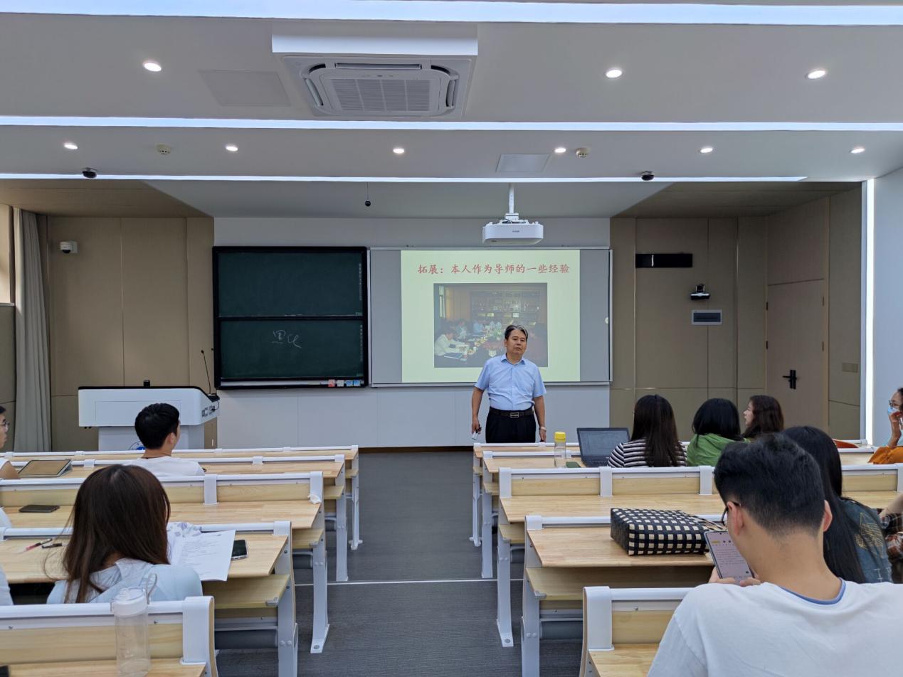 首先,雷五明教授讲述了研究生要如何建立和谐健康的导学关系。雷教授提出,良好的导学关系需要培养单位、研究生导师、研究生、研究生辅导员四者配合,他结合个人教学经历引出导师与学生的多重关系:即在学术上是指导关系,在生活上是朋友关系,在事业上是合作关系,鼓励研究生们应从“心”出发,运用合适的沟通方式与导师、辅导员、师兄师姐沟通。随后,雷教授围绕“研究生压力来源”这一话题,引导研究生们思考如何进行压力管理,雷教授从生活环境、个人规划、社交等方面提出缓解焦虑和抑郁的建议:一,把生活空间布置明亮一些;二、定期运动;三、做好个人规划,让自己忙而不累,累而不烦;四、多与朋友相处倾诉等。雷教授还号召同学们要重视心理健康教育,做自己心理健康维护的第一负责人。当出现心理问题时,一定要寻求外部的帮助,求助是自我改变的开始。雷教授的讲授幽默风趣,现场气氛活跃,他还表示如果同学们有问题,可以通过邮件或微博与他联系,欢迎同学们向他提出问题。