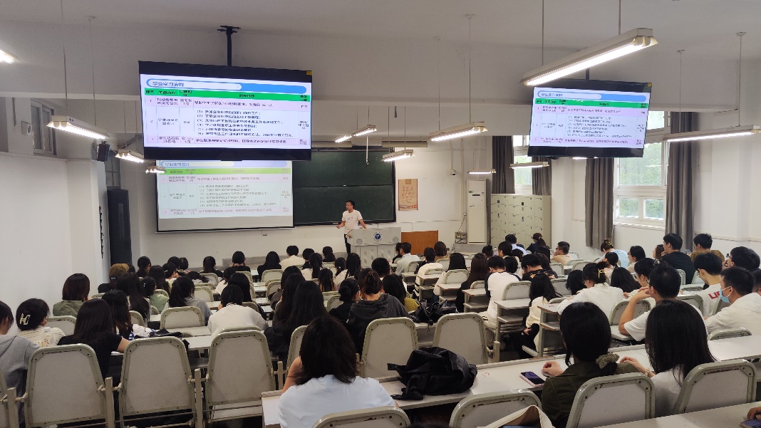 系副主任邓国华给大家介绍了实习和就业的相关情况,公布了毕业实习的具体方案和计划。他列举了今年就业的相关数据,鼓励学生在实践中学习知识,提升技能,培养职业素养,增强就业竞争力。邓老师建立了本系实习-就业信息群,已密集地发布了多种实习和就业相关信息,倡导全体教师积极参与到学生的实习和就业工作中来,持续地向学生推荐实习和就业机会,为学生就业积极创造条件。