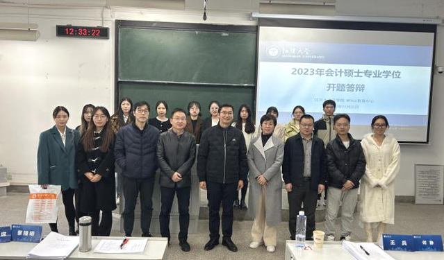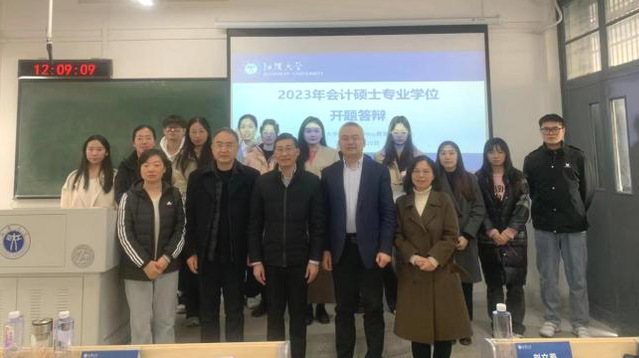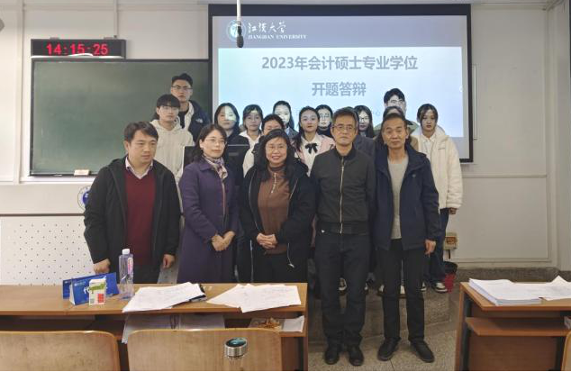 20231125午,MPAcc教育中心J06教学楼组织开展2022会计专硕学位论文开题答辩。开题答辩小组成员由多位行业内知名专家、学者及学位点专职教师组成。在各指导老师的悉心指导与答辩小组专家的犀利点评下,开题答辩顺利完成。