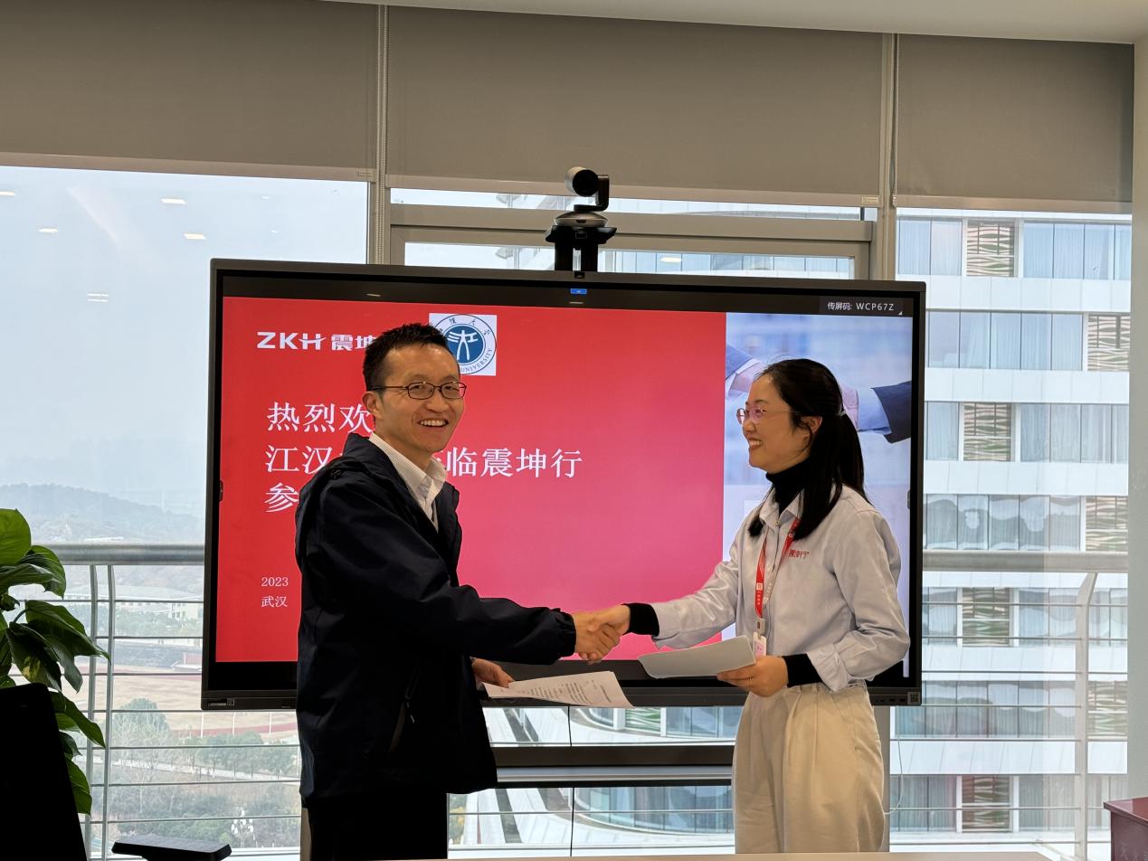 2023年12月13日下午,吃瓜网 和光电材料与技术学院一行五人,到位于武汉市东湖高新技术开发区光谷金融中心的“震坤行”武汉行政中心(以下简称震坤行)开展访企拓岗及实习基地签约活动。