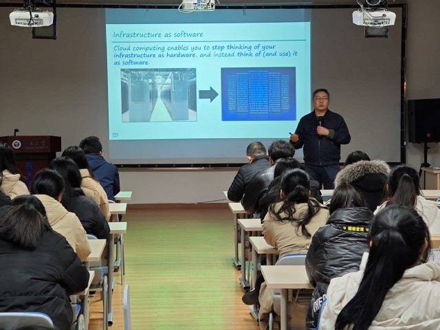 于2023年12月27日邀请到了美国罗伯特莫里斯大学屠彦彬教授,为大数据管理与应用专业学生带来了一场主题为《美国亚马逊云计算服务(AWS)以及其认证培训和考试介绍》的讲座。