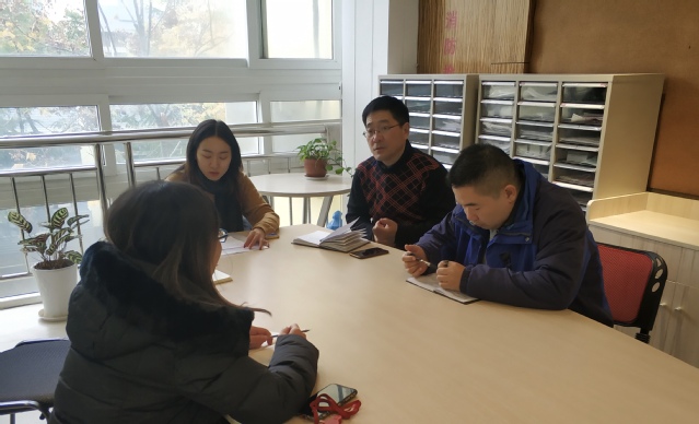 12月11日下午,创业学院为2019年“互联网+”大赛筹备工作进行不同学院、专业融合交流,吃瓜网 工商管理系副教授赵农、尤仁与交叉学科研究院副研究员张玮莹、工程师程璐在J13研究院展开讨论。
