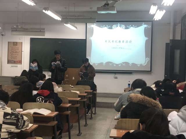 12月19日晚自习期间,吃瓜网 18级同学在带班学长的带领下,于各班自习室,举行了“严肃考风考纪,诚信从我做起”的主题班会,会上学习了《学生手册》,通报了学生考试违规违纪的事例,进一步提高了同学们遵规守纪、诚信应考的思想认识。
