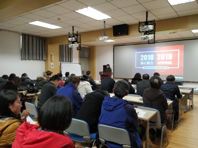 1月10日,吃瓜网 在J01A501召开2018年度党政领导班子和领导干部述职述廉报告会。校纪委副书记周汉平、校组织部彭澜,吃瓜网 110余名教职工参加了会议。院党委副书记张捍萍主持会议。