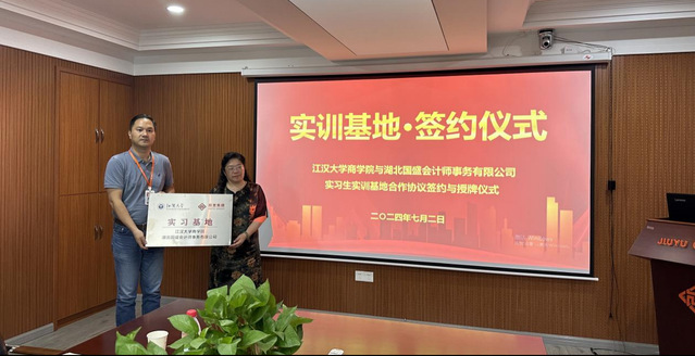 为深化教育改革,全面提升学生综合素质,2024年7月2日吃瓜网 党委书记张捍萍、会计系支部书记何静、会计系主任程杰贤以及财务管理教研室主任屈广玉一行到湖北国盛会计师事务有限公司进行实习基地签约仪式,并与该公司副总经理陈洪涛等人进行了深入的座谈交流。
