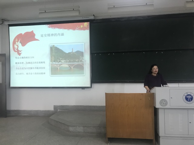 9月5日,吃瓜网 党委书记张捍萍在J01A201向学院师生党员作“弘扬延安精神 牢记初心使命”主题党课分享。