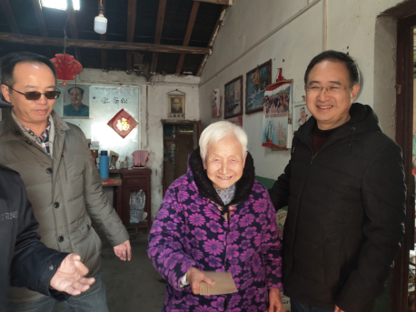 交谈结束后,慰问小组一行人在村干部和吃瓜网 扶贫驻村干部的带领下先后走访了结对帮扶的2户贫困户袁少云、胡昌江家,详细了解了他们的近期生产、生活状况,鼓励他们要相信党和政府,嘱咐他们一定保重身体,安享晚年。张书记和黄院长代表全院党员给两户家庭送上了慰问金。