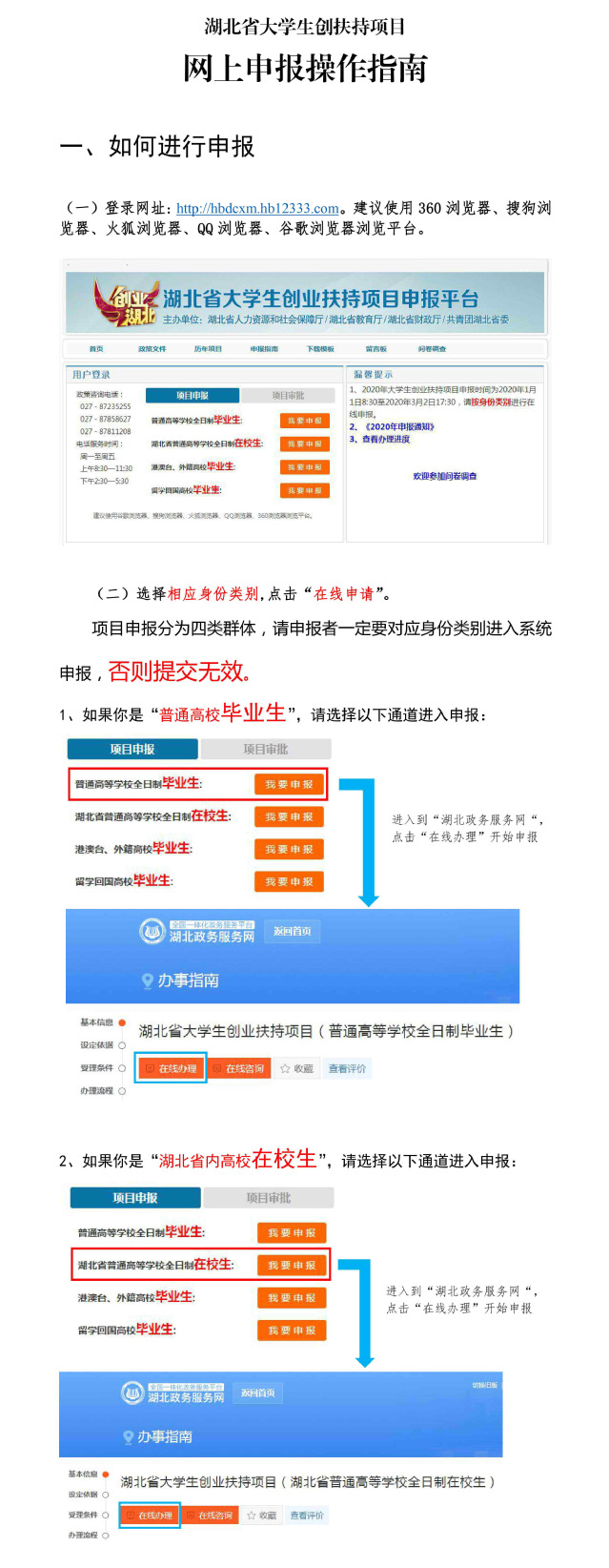 2020年湖北省大学生创业扶持项目网上申报指南://hbdcxm.hb12333.com/infor_annexes/2019/2019-12-16/b42e9795-1212-42ea-9eb4-cfd3499eaf36.pdf