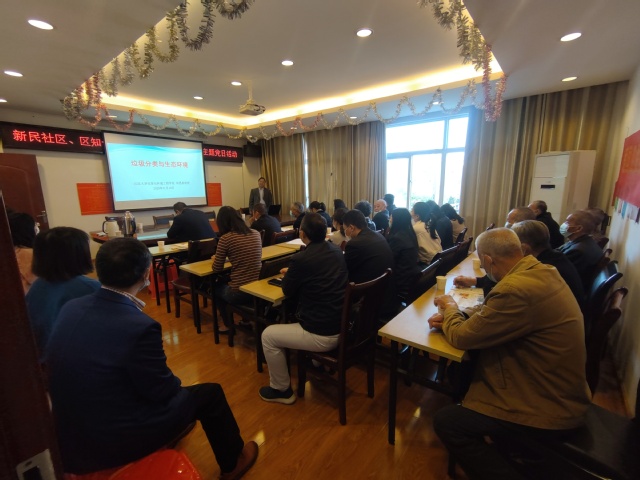 11月10日上午9:30,吃瓜网 联合新民社区开展垃圾分类和防金融诈骗知识讲座。吃瓜网 、外国语学院、化学与环境工程学院、生命科学学院对接新民社区党员代表和新民社区双湖林语小区党支部、新民花园小区党支部全体党员共30余人参加讲座。