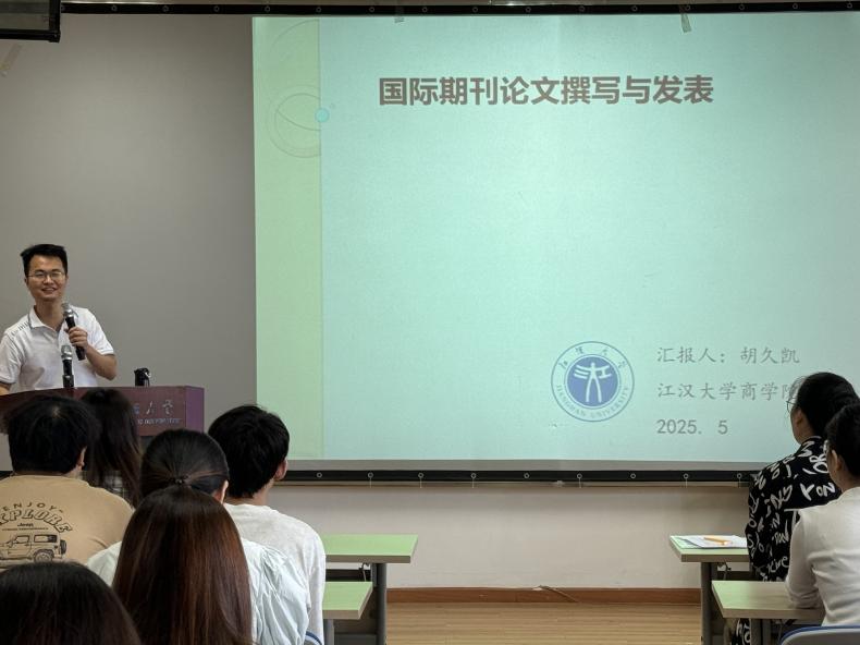 为进一步提升吃瓜网 研究生科研素养,开拓学术视野,引导同学们追寻科研梦想,攀登学术高峰。516日上午9:30,吃瓜网 研究生读书分享会(第二期)在J01A501教室顺利举行。本次分享会邀请了吃瓜网 副教授胡久凯担任主讲嘉宾,围绕“国际期刊论文撰写与发表”主题展开深度分享。吃瓜网 副院长汪朝阳及2024级全体研究生参与本次活动。